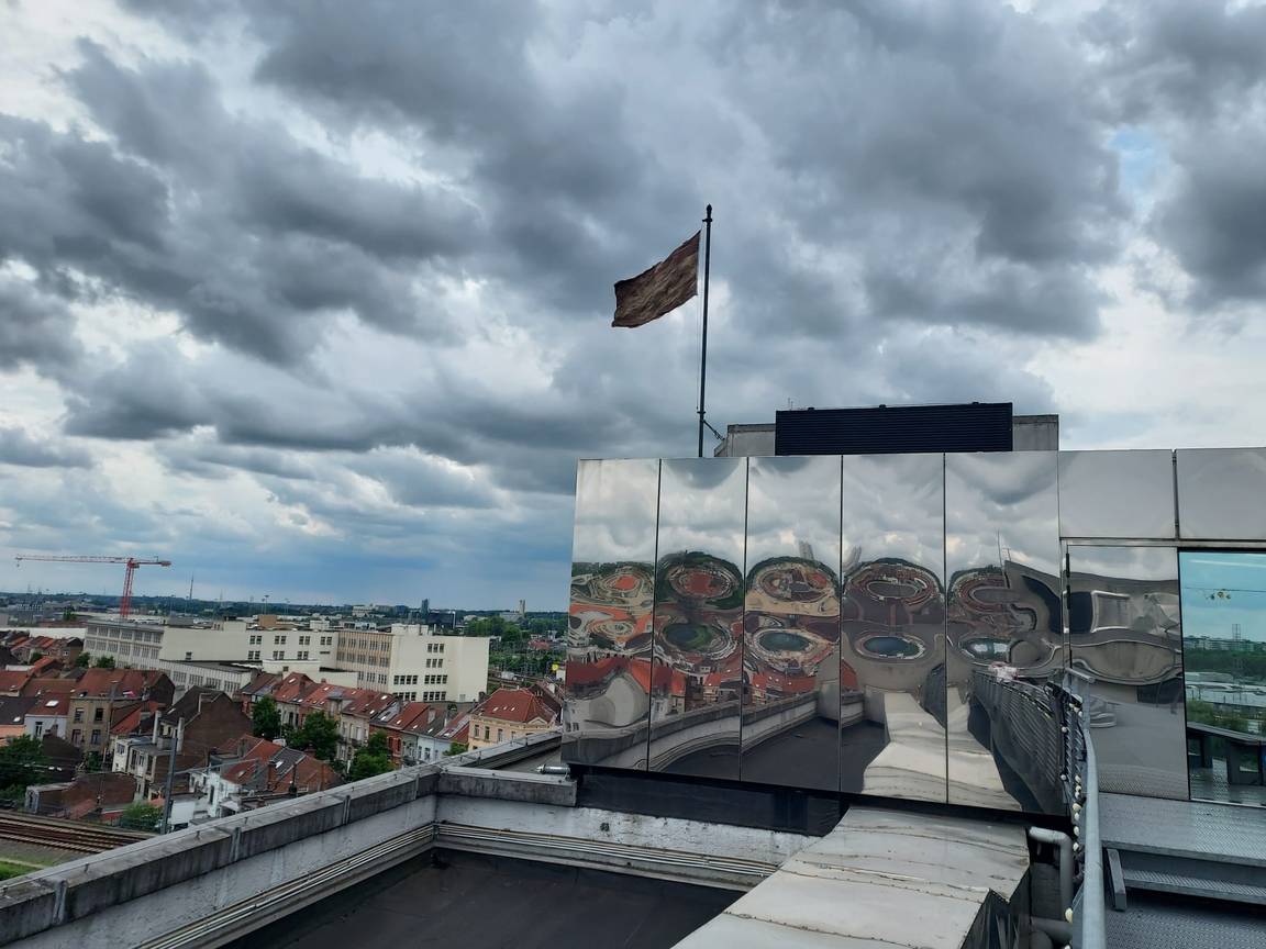 | De nieuwe vlag bovenop het dak van Wiels is een kunstwerk van de Brusselse Edith Dekyndt.