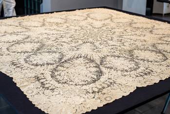Het vierkante kantwerk van bijna 2 meter lang is volledig vervaardigd in Point de Gaze, een verfijnde en complexe naaldkanttechniek. "Deze techniek werd in de 19de eeuw ontwikkeld door Brusselse manufacturen, die de stukken in lokale ateliers produceerden en vervolgens verhandelden in Brussel en Parijs."
