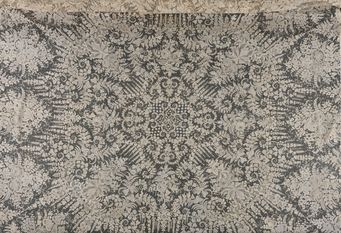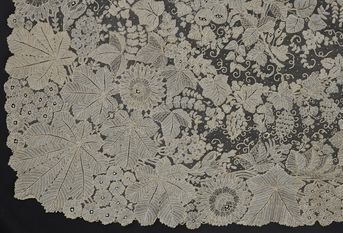 "De katoenen kant onderscheidt zich door luchtige mazen die florale motieven met opvallend realisme verbinden." Op het uitzonderlijke kantwerk staan geaderde kastanjebladeren, dahlia's, wijnranken en druiventrossen, bloeiende pioenen, rozen, vingerhoedskruid, klokjesbloemen, en hortensia's afgebeeld. De oorsprong van het werk blijft evenwel onduidelijk.