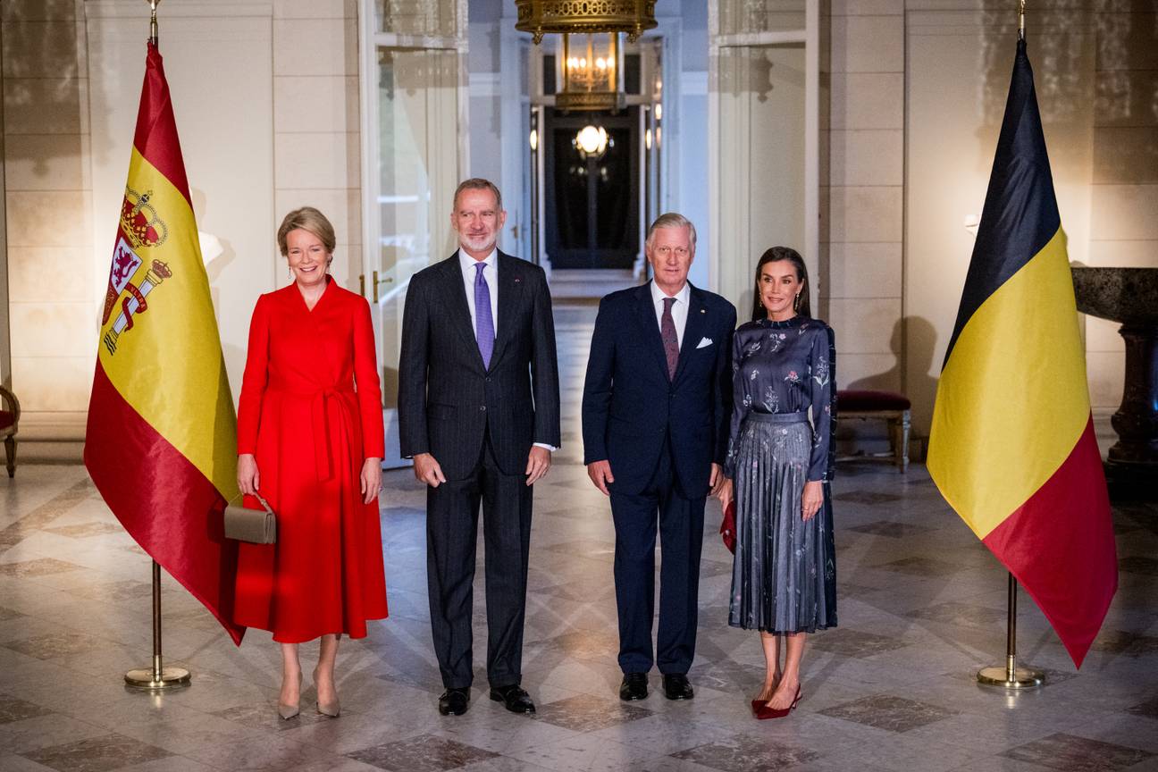 | Het Spaanse vorstenpaar ging dinsdagochtend eerst op bezoek bij hun Belgische tegenhangers.
