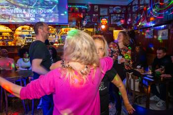 Wie het café binnenstapt, voelt meteen dat het 'iets' heeft. Geschiedenis onder meer, want een deel van het interieur dateert nog van de opening in de jaren 1950. Volkse sfeer ook, met Belgische vlaggen en een bepaald soort muziek. Op een dinsdag in de vooravond passeren onder meer 'Brother Louie' (Modern Talking), 'Adieu jolie Candy' (Jean-François Michael) en 'Live is Life' (Opus) de revue. Maar bovenal is het een plek waar cafégasten nog ongedwongen met elkaar in gesprek gaan, op elk moment van de dag. Of samen zingen, want elke vrijdag en zaterdag staat er karaoke op het programma.