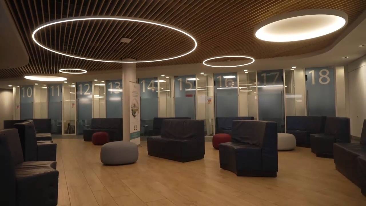 Een lege wachtzaal in het ziekenhuis in Oudergem op de dag van de staking.