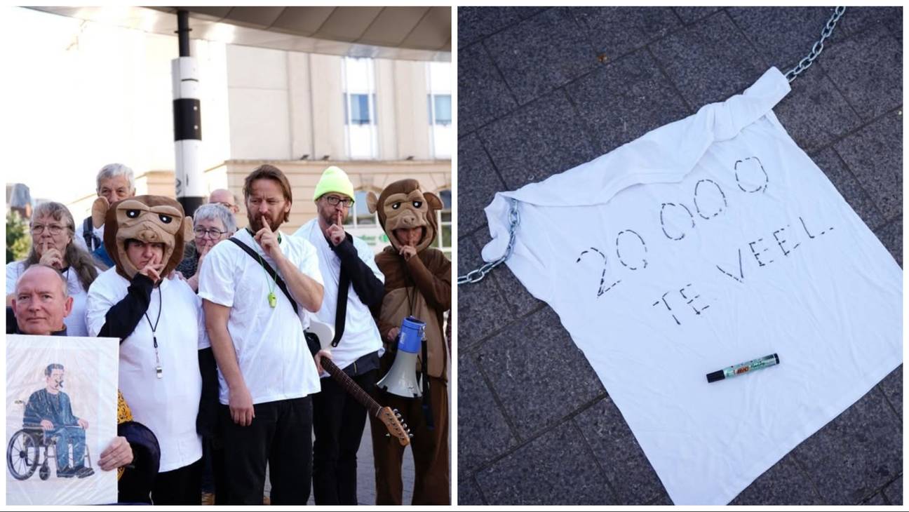 | De actiegroep Recht op Ondersteuning bracht een symbolisch fluitconcert onder begeleiding van gitaar.
