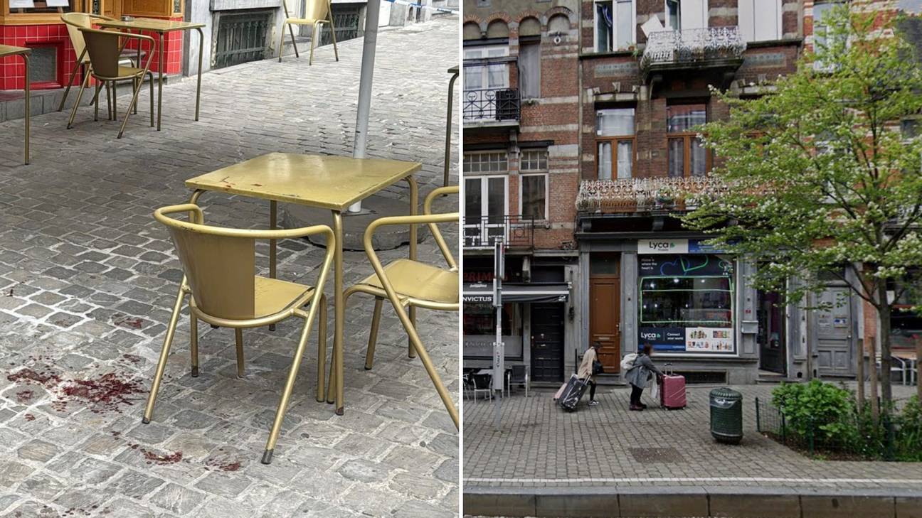 | De sporen van de vechtpartij waren na afloop zichtbaar bij het café naast de nightshop in de Paul Dejaerlaan in Sint-Gillis.