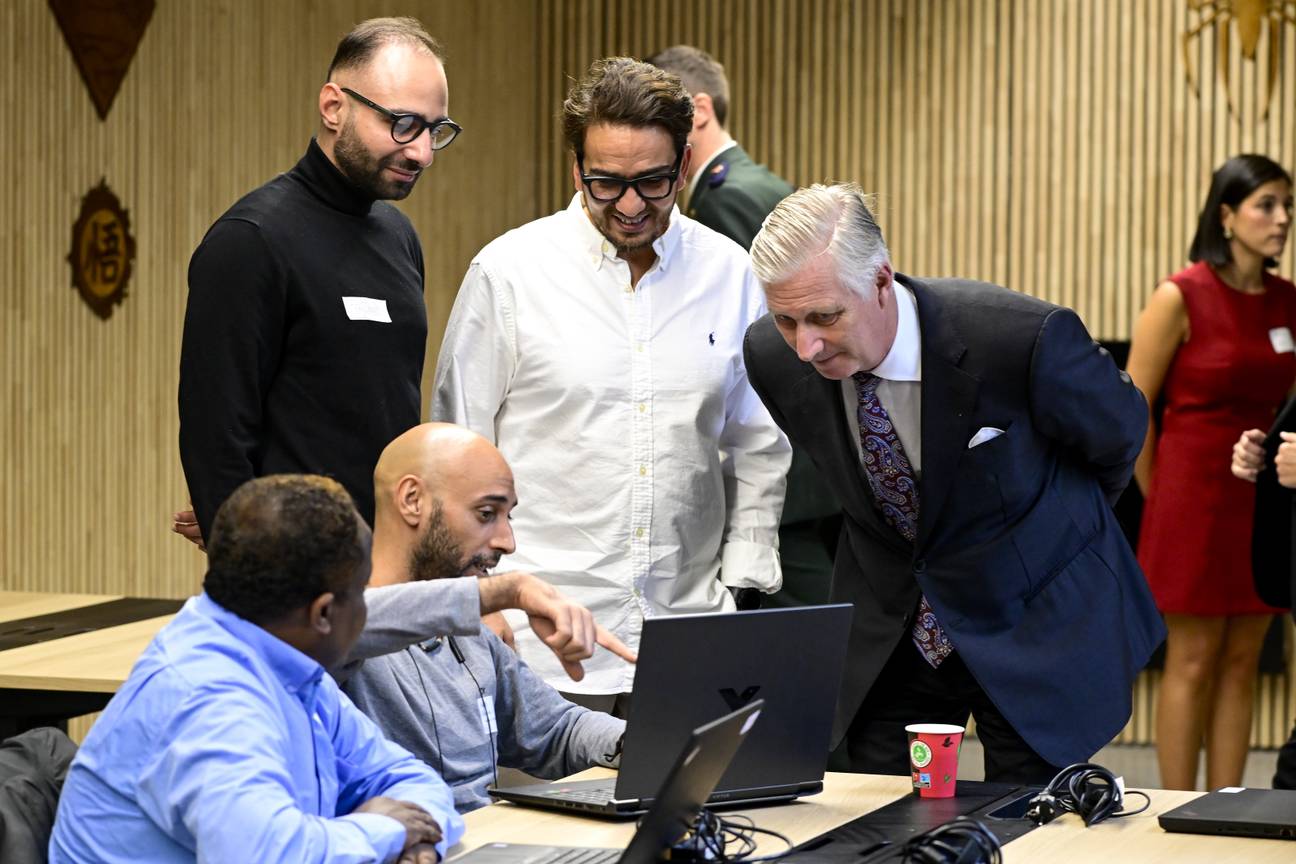 | Ibrahim Ouassari en koning Filip bij een bezoek aan de Lakense ruimte van Molengeek.
