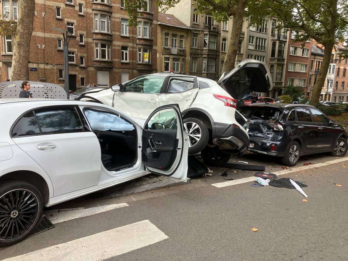 Het ongeval vond omstreeks 11.30 uur plaats op het kruispunt van de Voltairelaan met de Ernest Renanlaan. Daar botsten twee wagens in nog onduidelijke omstandigheden tegen elkaar, waarna ze nog tegen een derde, geparkeerde wagen botsten. De maximumsnelheid is op die plek 30 km per uur.