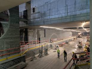 De MIVB heeft de pers rondgeleid in de afgewerkte ruwbouw van het metrostation.