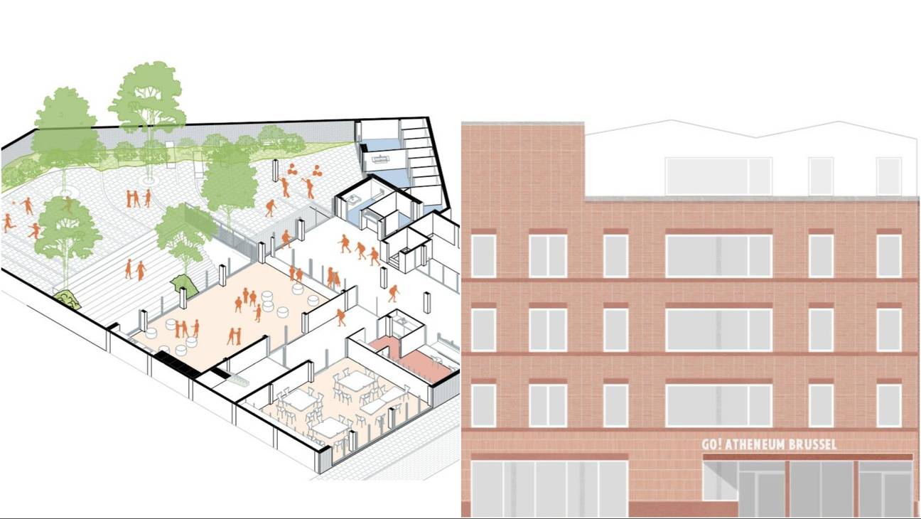 | Renders van het toekomstige schoolgebouw van het Atheneum Brussel in de Vaartstraat.