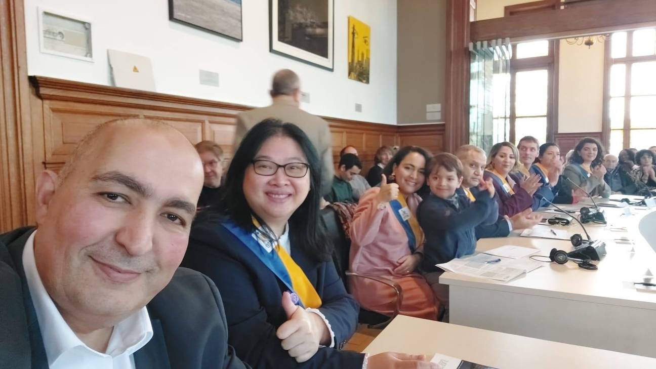 | Le Bao Tran Nguyen (midden) bij haar eerste zitting van de gemeenteraad van Jette met Fouad Ahidar (l.)