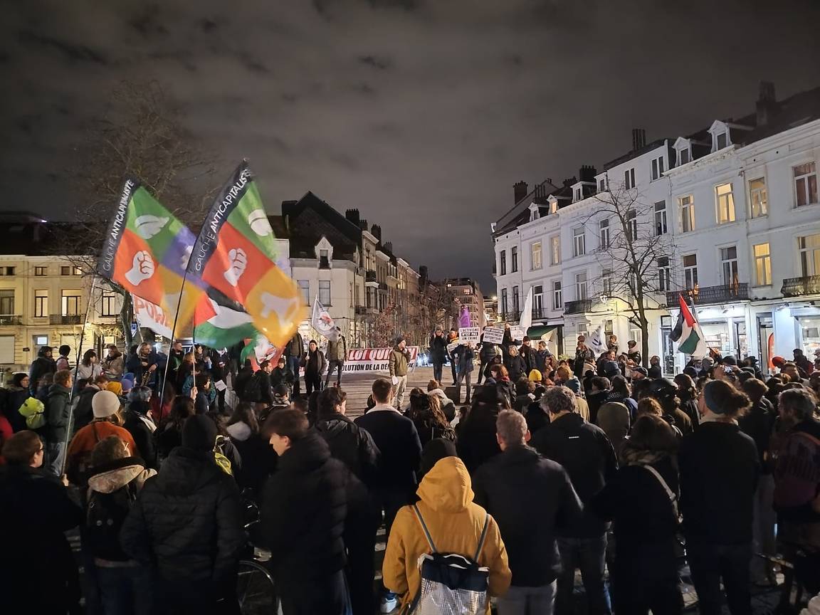 Een honderdtal betogers op het Kasteleinsplein in Elsene.