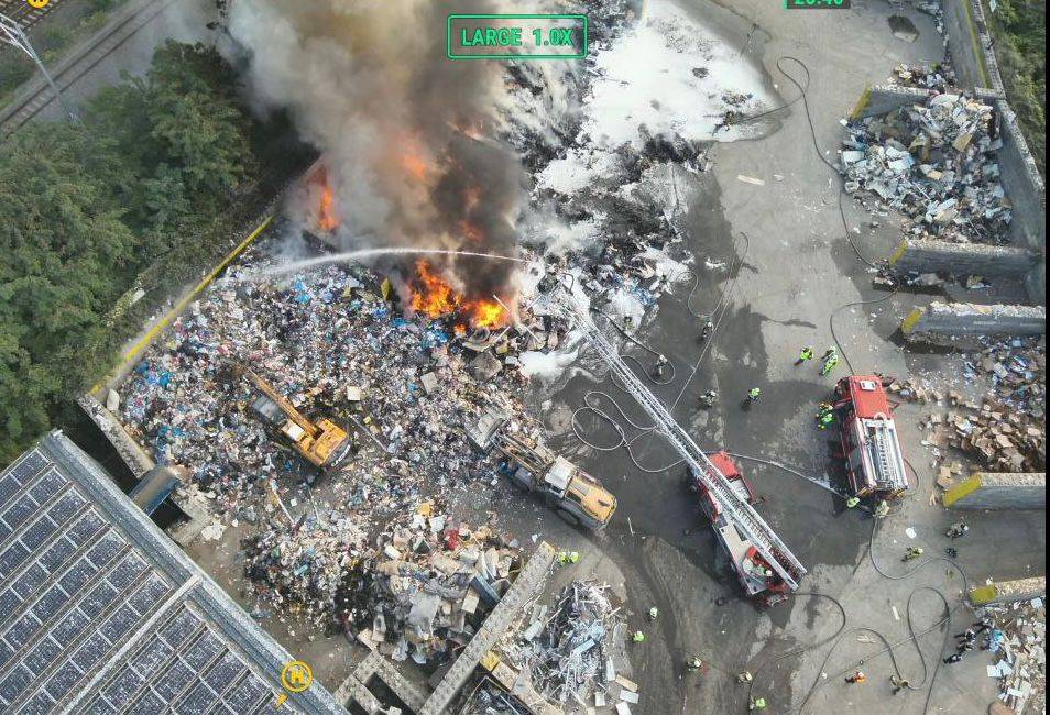 Beelden van de brand op de site van Renewi in Vorst.