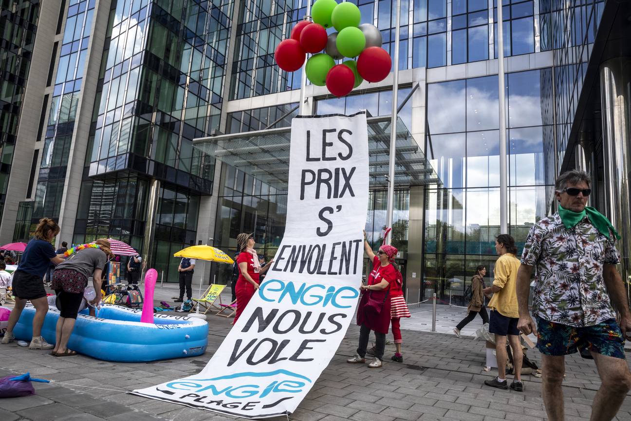 | Actie van Code Rood aan het Belgische hoofdkwartier van Engie in de Brusselse Noordwijk in 2023 (archief).