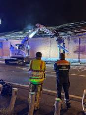 Volgens de brandweer bestond er ook een ernstig gevaar dat het houten dak zou instorten. Daardoor kon de brandweer aanvankelijk niet van binnenuit blussen. Er werden daarom drie autoladders ingezet, net als vier blusvoertuigen en een tankwagen. De politie bakende een ruime veiligheidszone af.