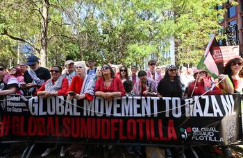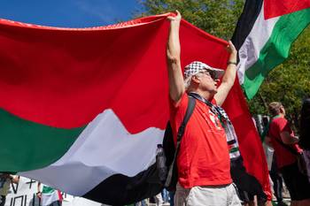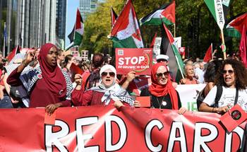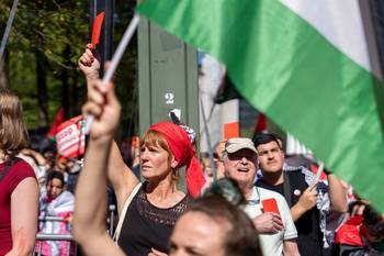 De straten van Brussel kleuren zondagnamiddag opnieuw rood voor de tweede editie van Rode Lijn voor Gaza. "Er moet een einde komen aan de medeplichtigheid van instellingen, staten en bedrijven aan de misdaden van het Israëlische regime", klinkt het bij de internationale solidariteitsorganisatie. De politie telt 70.000 betogers, de organisatie heeft het over 110.000 deelnemers.