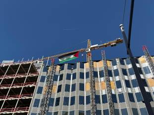 Om 14 uur is de mars van start gegaan aan het Noordstation, waar verschillende speeches worden gehouden. Via de Kruidtuinlaan trekken de manifestanten naar het Jean Reyplein, vlak bij de Europese instellingen. Opmerkelijk: betogers hebben een grote Palestijnse vlag opgehangen aan een torenkraan aan Rogier.