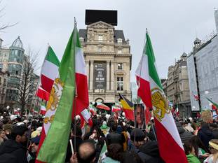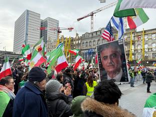 Dat blijkt uit foto's van tijdens de protestactie, de MR-voorzitter poseert daar met een vlag van Iran die gebruikt werd tijdens het bewind van de sjah, voor het huidige islamitische regime aan de macht kwam. Uit beelden blijkt dat er zondag honderden manifestanten zijn afgezakt naar het De Brouckèreplein.