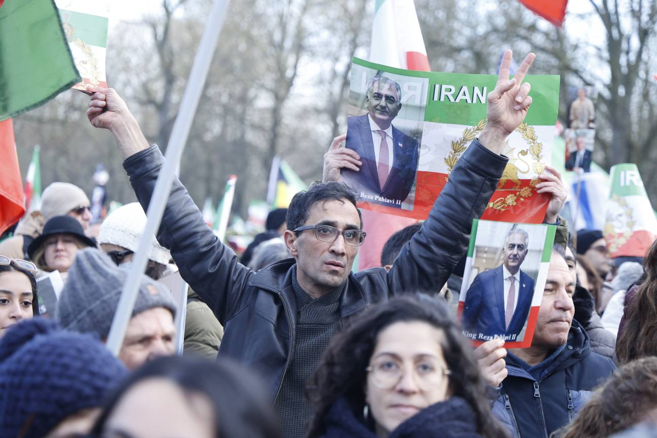 Meerdere duizenden mensen zijn zondag bijeengekomen op het Schumanplein in Brussel, in de Europese wijk, om op te roepen tot een regimewissel in Iran. Een uur na het officiële begin bleven nog honderden mensen toestromen.