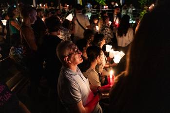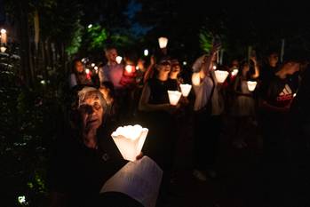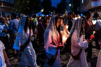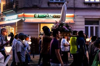 "Dit is de toekomst van de kerk, levend en dynamisch,” vertelt Danielle Cosyns wanneer ze donderdag rond negen uur ’s avonds de Onze-Lieve-Vrouw van Lourdeskerk buiten wandelt. Binnen zijn zo’n driehonderd gelovigen samengekomen om te bidden. Een halfuur later komt iedereen buiten, met net als Danielle, een kaars in de hand.