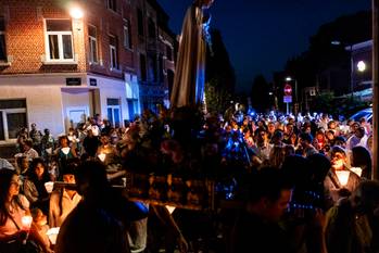 Een duizendtal gelovigen zijn donderdagavond samengekomen in Jette voor de kaarsjesprocessie. De religieuze optocht eindigde aan de Lourdesgrot, het centrum van de driedaagse viering van de Tenhemelopneming van Maria. Vandaag vindt daar om 15 uur de traditionele misviering plaats.