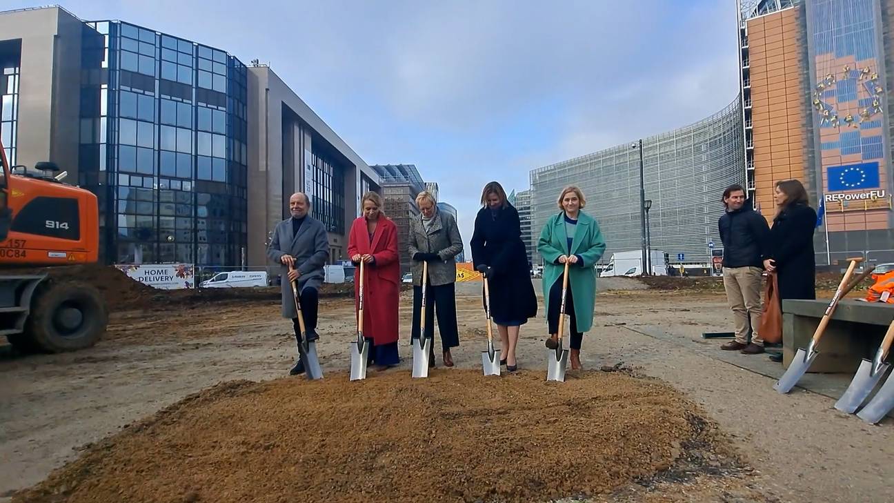 | De eerste steenlegging voor een nieuw Schumanplein op 22 november 2023 met o.a Alain Hutchinson (Brussels commissaris voor de EU), federaal minister Karine Lalieux (PS, bevoegd voor Beliris), Brussels staatssecretaris Ans Persoons (Vooruit, bevoegd Stedenbouw) en Elke Van Den Brandt (Groen, bevoegd voor openbare ruimte). Vandaag, meer dan twee jaar later, is het plein nog lang niet klaar.