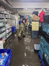 "Het ging om zestien tussenkomsten voor ondergelopen straten, waaronder drie tunnels, als gevolg van verstopte straatkolken, zeventien interventies bij particulieren voor overstroomde kelders, en acht andere tussenkomsten bij particulieren voor diverse waterinfiltraties, via het dak of het terras, of een ondergelopen liftschacht", zegt Derieuw.