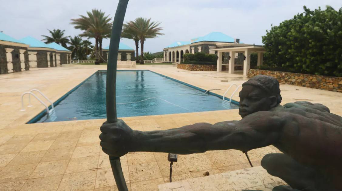 De Democraten van het Huis van Afgevaardigden in de Verenigde Staten publiceerden enkele dagen geleden nieuwe foto’s en video’s van het eiland van seksueel delinquent Jeffrey Epstein. Naast verschillende kamers en een nagebouwde tandartspraktijk met maskers aan de muur, valt ook een standbeeld naast het zwembad op.