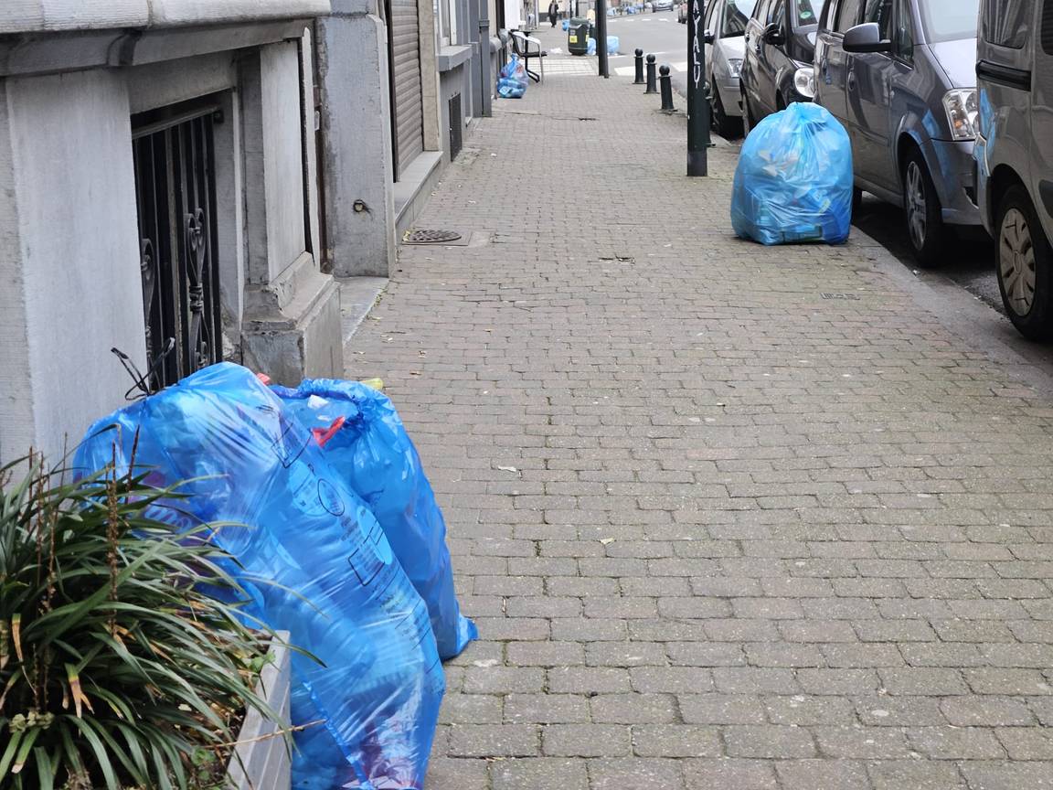 | Maandag zijn heel wat blauwe pmd-zakken niet opgehaald door een steunactie van de vakbond ACOD bij Net Brussel.