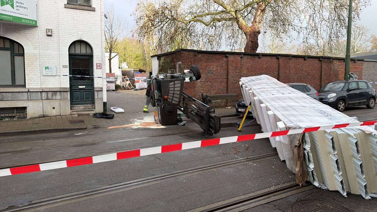 Heftruck kantelt in Ukkel, bestuurder raakt zwaargewond