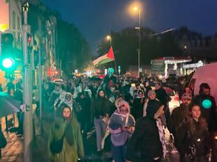 Net als donderdag verzamelen vrijdag pro-Palestijnse actievoerders aan het ministerie van Buitenlandse Zaken, nadat Israël eerder deze week de hulpvloot Global Sumud Flotilla onderschepte. Omstreeks 18.00 uur telde onze verslaggever enkele honderden aanwezigen.