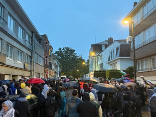 Tegelijk benadrukt de delegatie dat zij niet de initiatiefnemers zijn van de actie die rond 18.00 uur vrijdagavond begon aan de ambassade van Israël in Ukkel. Daar waren een 400-tal mensen op aanwezig, kon een reporter ter plaatse vaststellen. Rond 19.30 uur vertrokken ze naar de Beurs, waar dagelijks een betoging plaatsvindt.