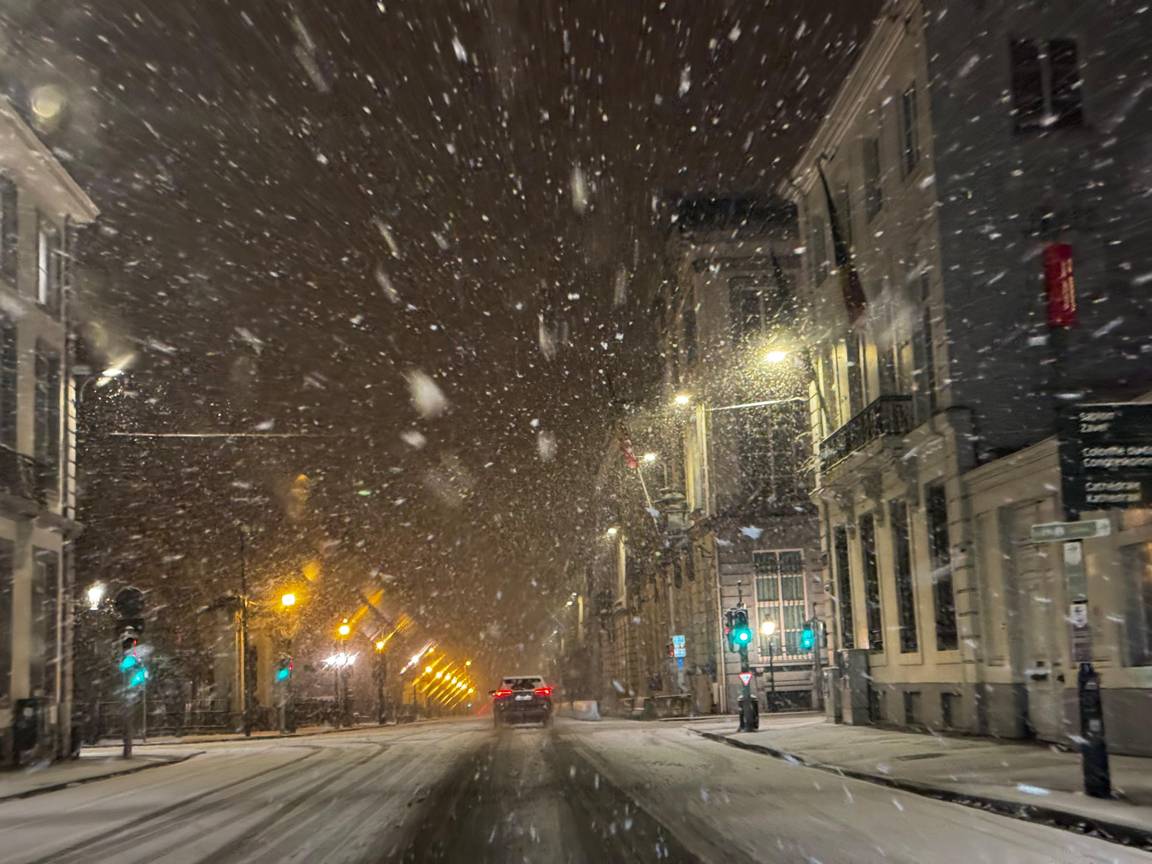 Vannacht dook de temperatuur in Brussel weer onder het vriespunt. Aanvriezend smeltwater en resten sneeuw veroorzaken samen met nieuwe sneeuwbuien spekgladde wegen in en rond Brussel.