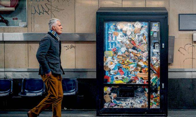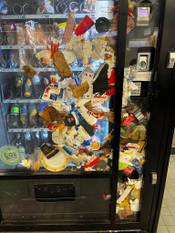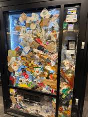Man met psychische problemen propt snoepautomaten vol afval