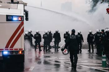 De oproerpolitie greep meteen in. De ordediensten zetten tijdens de incidenten het waterkanon en traangas in.