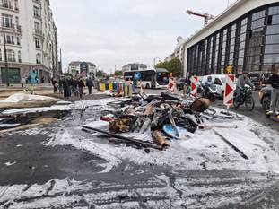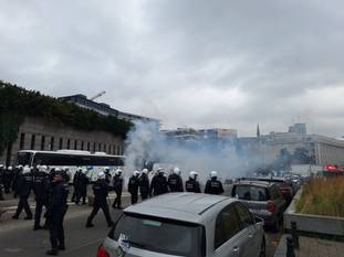 Dinsdagochtend stroomden de demonstranten toe aan het Noordstation. Daar gingen evenwel enkele opstootjes aan vooraf. Ter hoogte van de Diksmuidelaan staken groepjes betogers werfmateriaal in brand. Daardoor werden de plaatselijke tunnels kort afgesloten voor het verkeer.