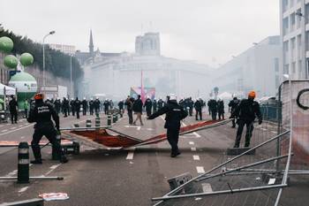 Rond 10 uur deze ochtend is de nationale betoging van start gegaan. Volgens de politie namen 80.000 mensen deel, de vakbonden spreken van zo'n 120.000 deelnemers. Het kwam verschillende keren tot een confrontatie tussen relschoppers en de politie, die daarop onder meer het waterkanon en traangas inzette. Een twintigtal personen werd opgepakt.