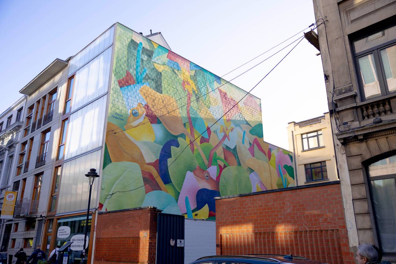 Het collectief Phayam Productions bestaat uit Marina Gutiérrez en Antoine Mathurin. Ze staan bekend om hun artistieke en ecologische aanpak. Voor hun werk in Sint-Gillis lieten ze zich inspireren door de natuur en haar evenwicht, het combineert biodiversiteit, kleur en stedelijke energie. De muurschildering toont abstracte bloemen en planten in felle kleuren, met hier en daar een kikker verscholen.