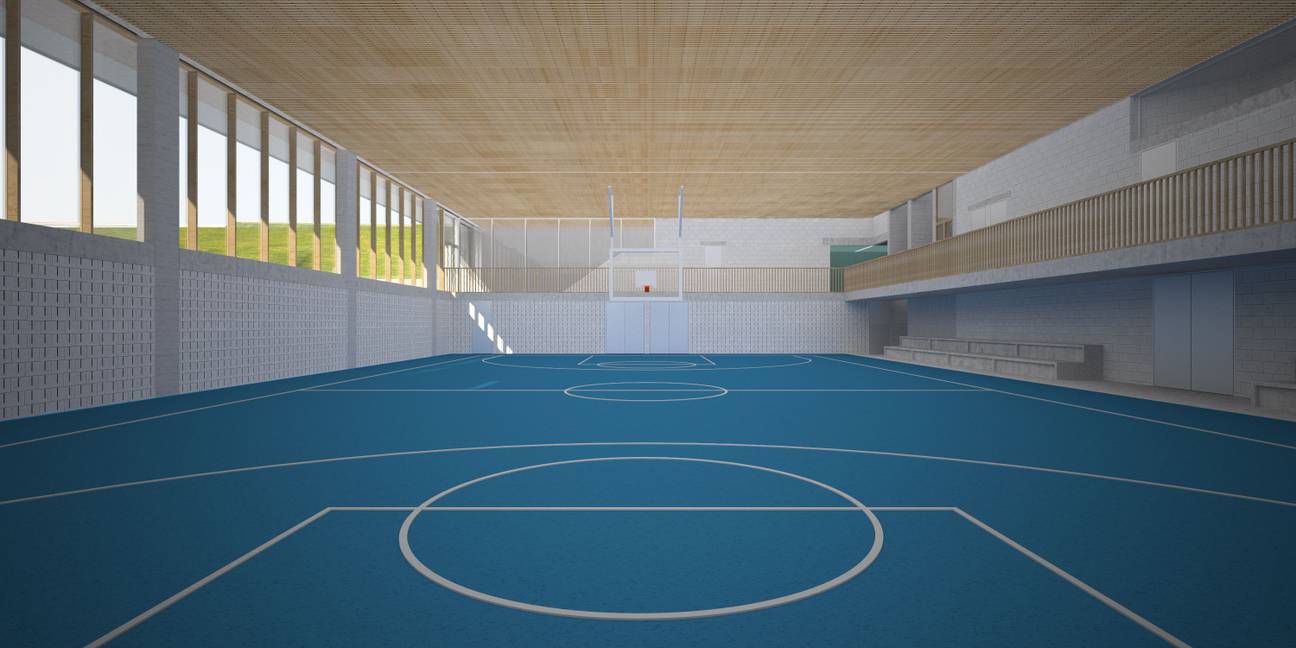 De zaal krijgt een aparte ingang, een ruimte voor een zaalwachter, opslag- en kleedkamers. Er komen ook tribunes, een geluidsinstallatie, een scorebord, een reinigingsmachine, turn- en gevechtssportmateriaal, pingpongtafels en doelen en netten voor basketbal, zaalvoetbal, volleybal, hockey en badminton.