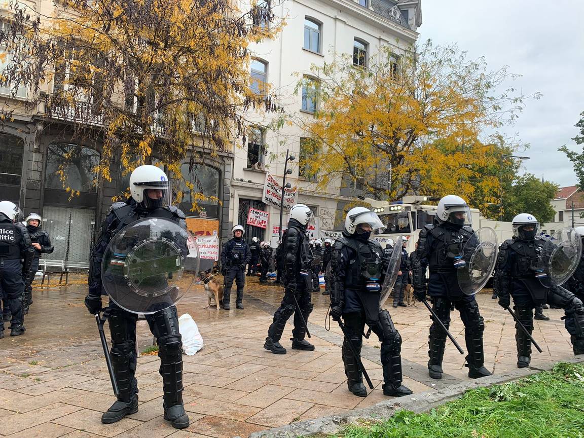 Tijdens de nationale betoging van vorige week dinsdag kwam het tot verschillende gewelddadige clashes tussen politiemensen en relschoppers. Gemaskerde activisten viseerden onder meer het kantoor van de Dienst Vreemdelingenzaken en een hotel, waarna de politie reageerde. Volgens sommigen gebeurde dit niet altijd even proportioneel. Een filmpje dat massaal online gedeeld werd, toont hoe een betoger die op de grond ligt door vier agenten getrapt en geslagen wordt.
