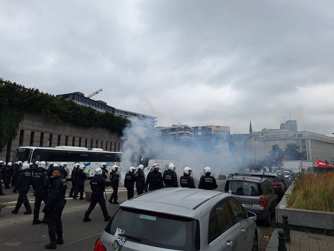 Lees meer over: Brussel , Samenleving , ACOD , politiegeweld , vakbondsbetoging , uitzetting , traangas politie