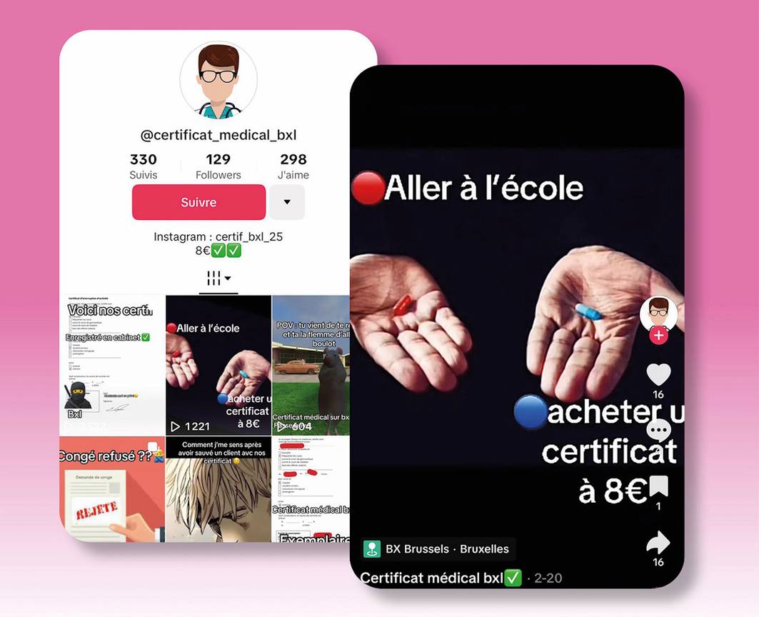 Enkele Nederlandstalige scholen in Brussel zien het aantal ziektebriefjes jaar na jaar stijgen en wijzen daarbij naar enkele veelschrijvende artsen. Al zijn doktersattesten vandaag zelfs te koop via Instagram, voor tien euro, te storten op een Litouws rekeningnummer. “Dat is schriftvervalsing en dus strafbaar.”