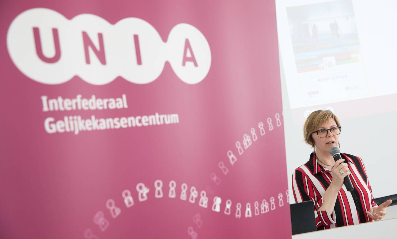 | Een vorige voorstelling van het jaarrapport van het Interfederaal Gelijkekansencentrum Unia door co-directeur Els Keytsman De Ronne (archief).