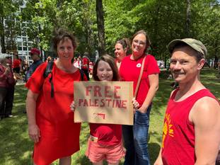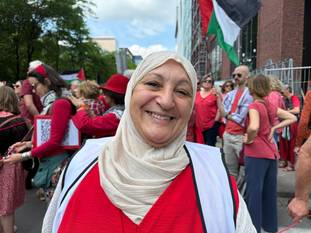 "Zelfs de kindjes in mijn klas zijn hiermee bezig, op tv zien ze niets anders", voegt de Antwerpse kleuterleidster Nadia toe. "Het is echt genoeg geweest." De deelnemers dragen allen een rood kledingstuk waarmee ze een symbolische rode lijn willen trekken tegen de genocidaire daden van Israël in Gaza.