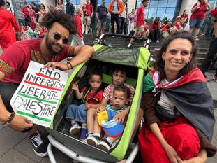Ook Zwangere Guy betuigde zondag steun in zijn kenmerkende, directe stijl. "Free Palestina, Congo en Soedan en fuck elke fascist op deze aardkloot", speechte hij.