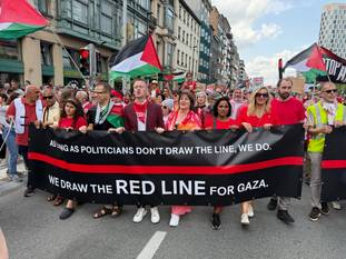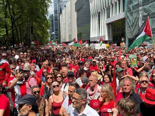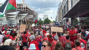 75.000 tot 110.000 burgers, vakbonden, jeugdorganisaties, cultuurhuizen en verenigingen protesteren zondag met een symbolische rode lijn tegen de "genocide" van Israël in Gaza en op het Palestijnse volk. “Het is schrijnend dat de honderden doden die er vallen, ons bijna niet meer raken.”