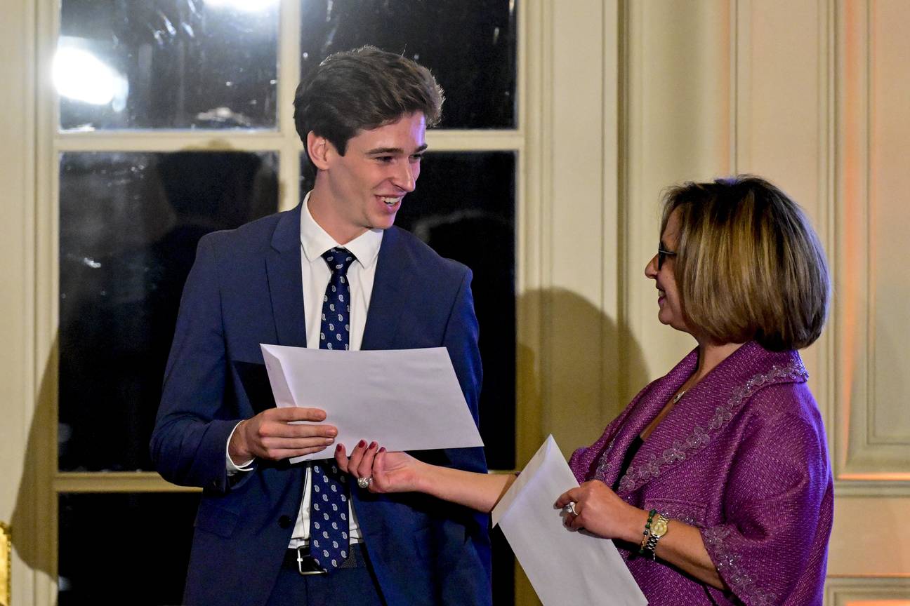 | VUB-student Pieter-Jan Lesage kreeg donderdag de Nederlandstalige Belgodyssee-prijs 2025 op het Kasteel van Laken.