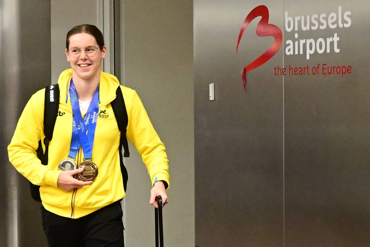 | Zwemster Roos Vanotterdijk landde deze dinsdagochtend in Brussel. Op het WK zwemmen in Singapore won ze twee medailles.