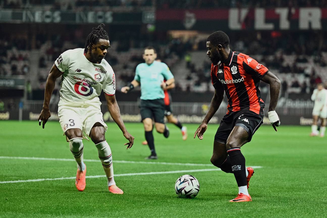 | Nathan Ngoy (links) in actie voor zijn huidige club, het Franse Lille.