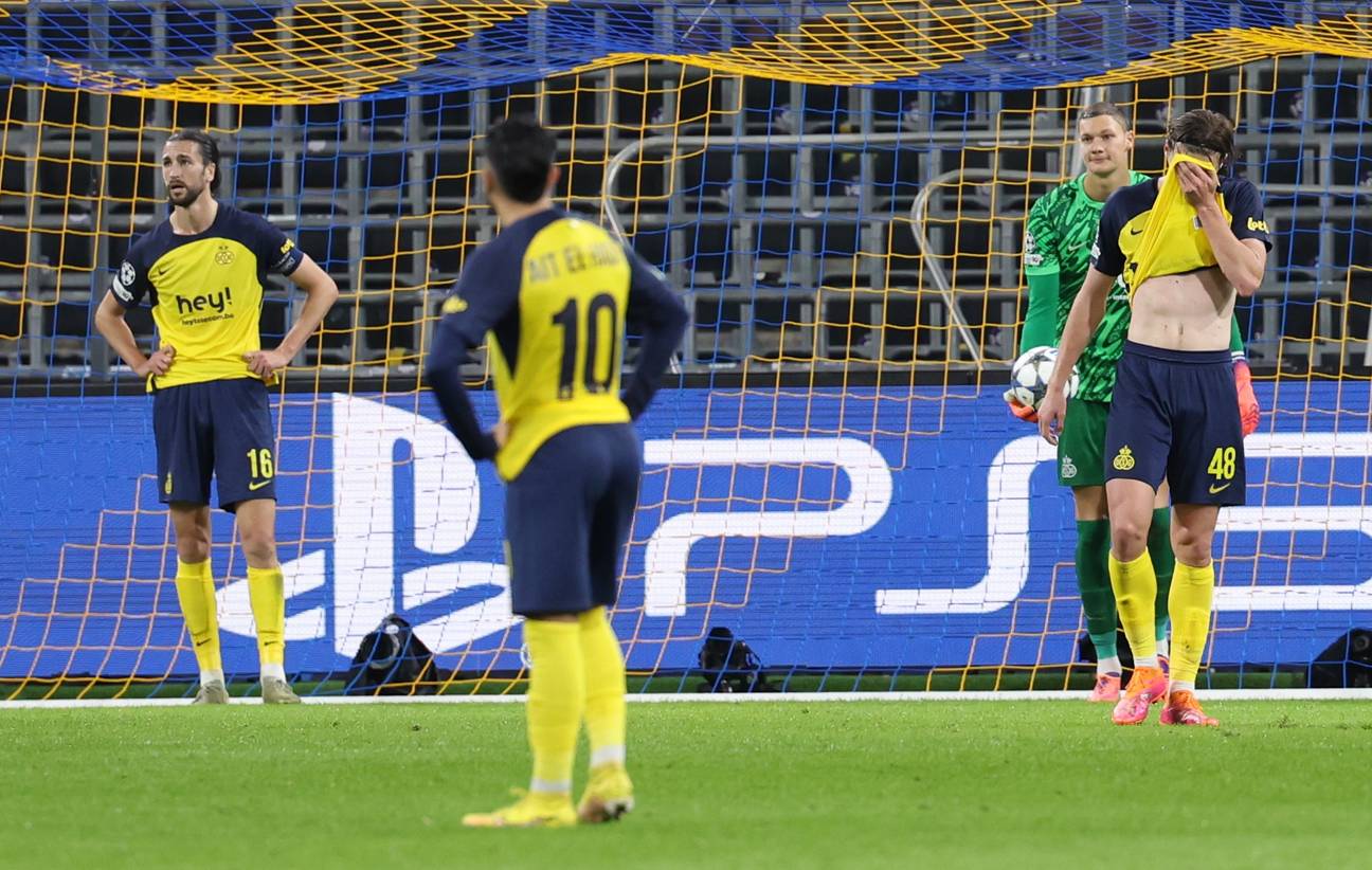 | Spelers van Union zijn teleurgesteld na een pandoering tegen het Italiaanse Internazionale