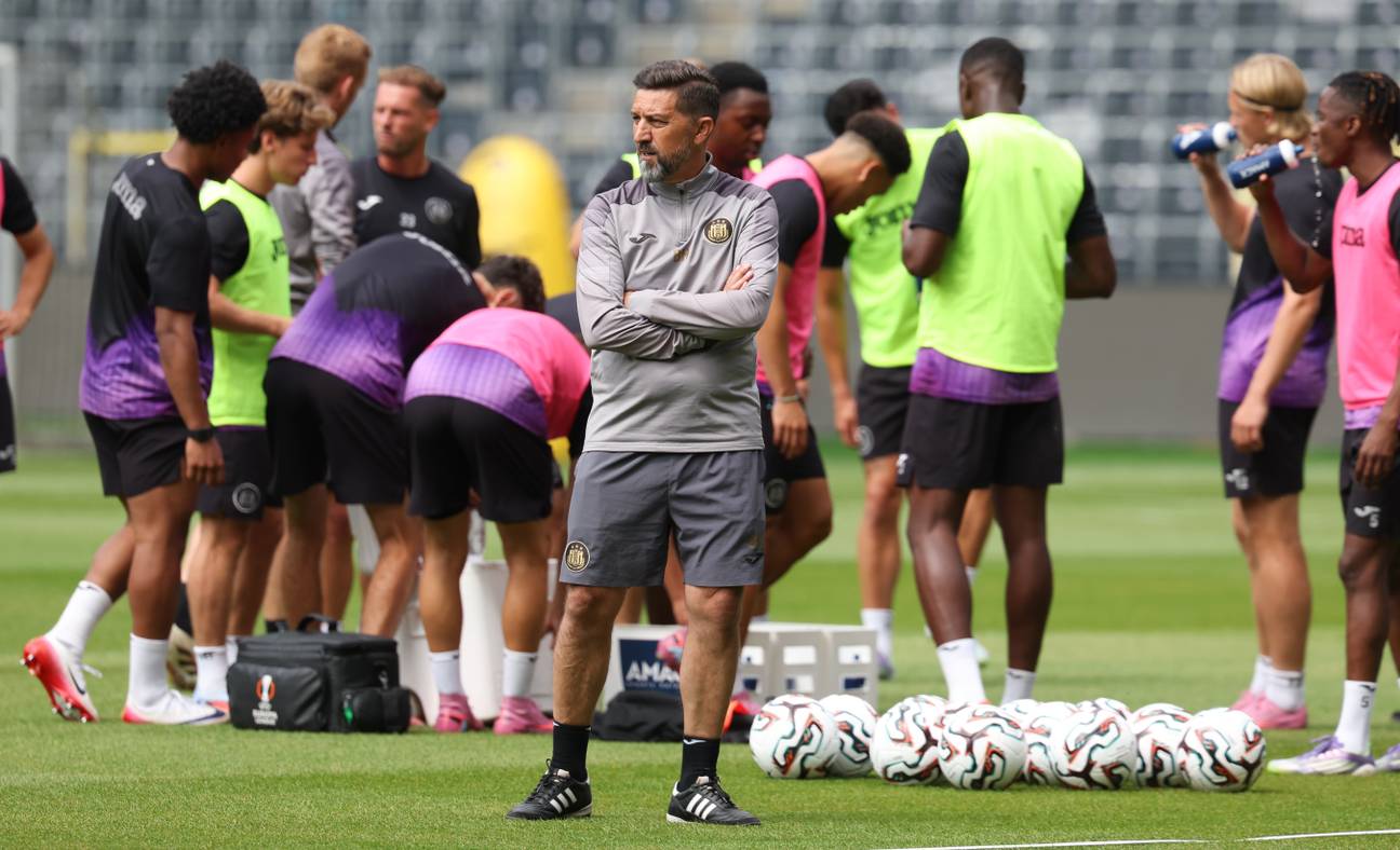 | Besnik Hasi, woensdagnamiddag tijdens de laatste training voor de wedstrijd in de Europa League tegen Häcken.