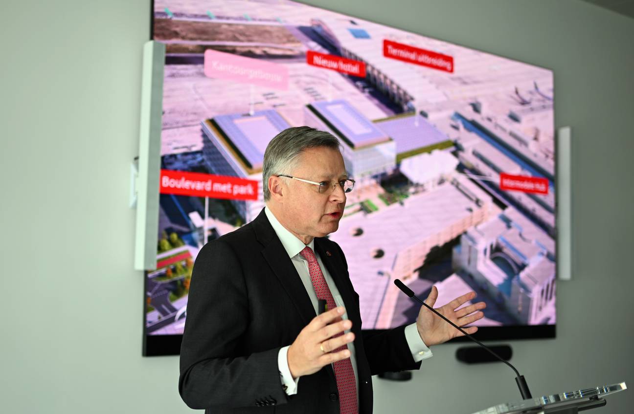 | Arnaud Feist, CEO van Brussels Airport, tijdens de voorstelling van de uitbreidingsplannen van de luchthaven in april.